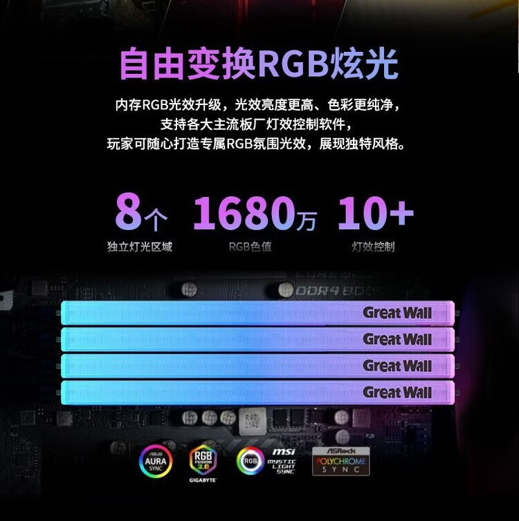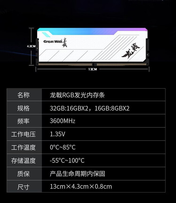 长城(Great Wall)DDR4 3600内存条马甲条16GB 8G*2